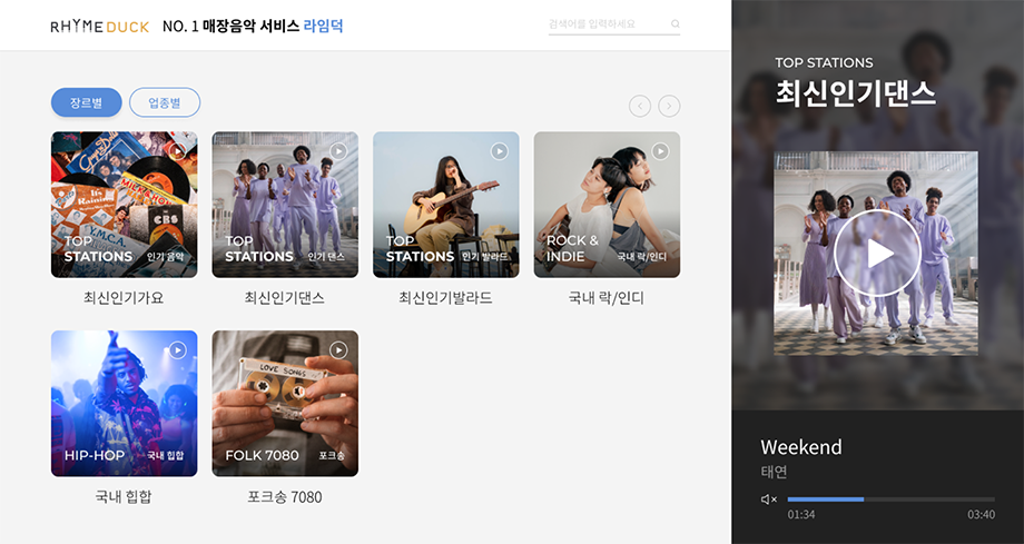 업종별/장르별 채널을 지금 바로 재생하세요!